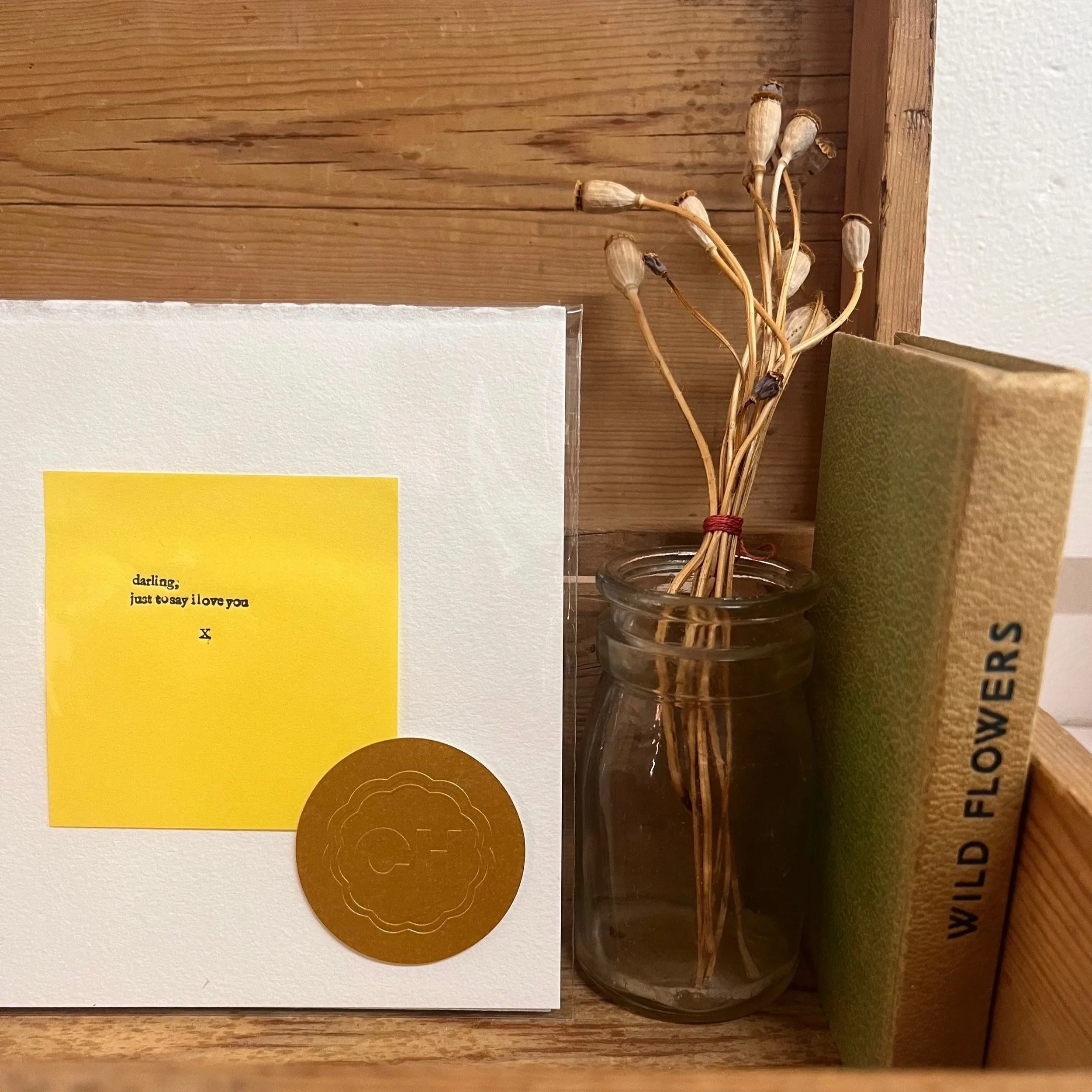 Letter pressed love note printed onto a butter yellow post-it and mounted onto beautiful 300gsm paper. Garamond 0.8 type, approx 15 × 15cm, supplied unframed.
