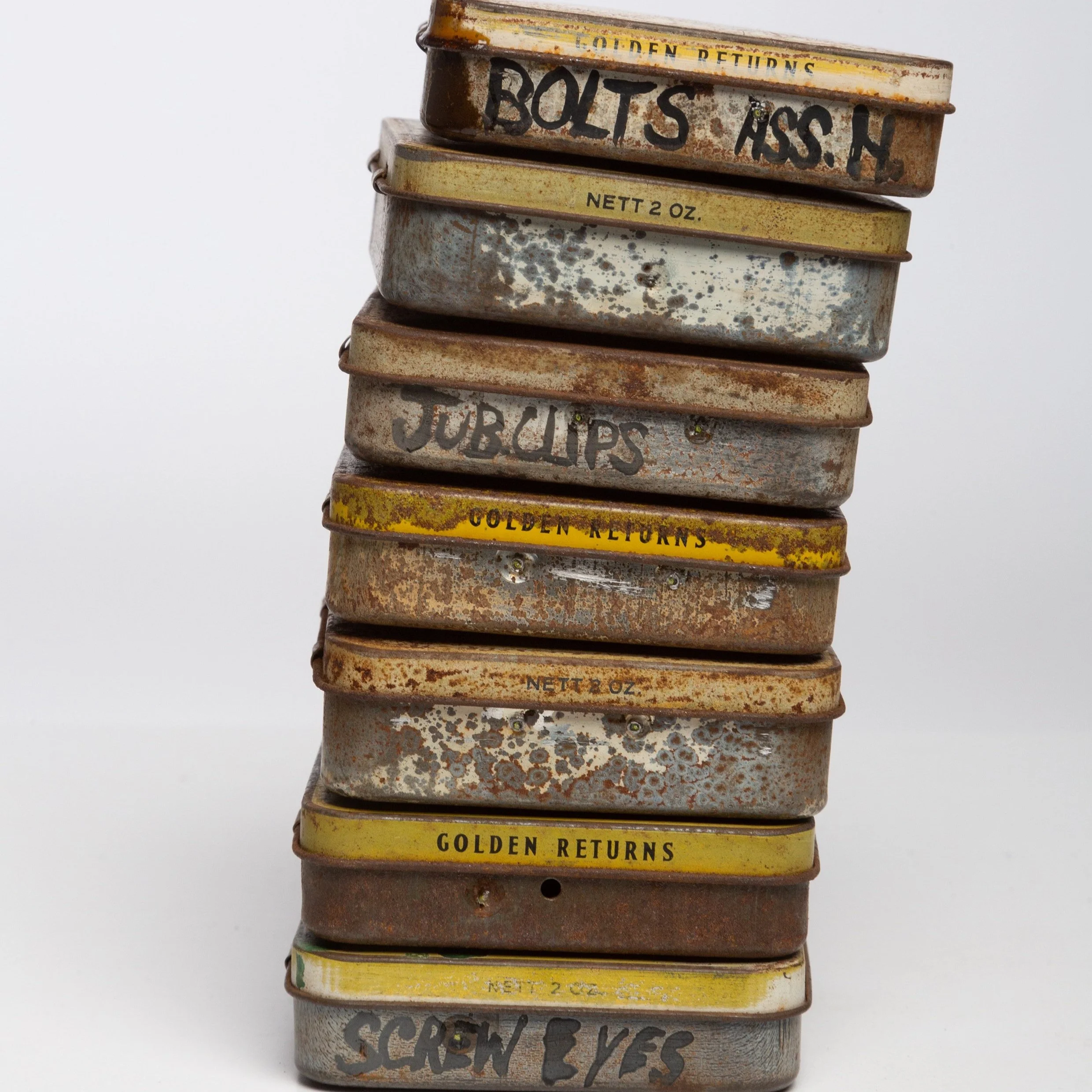 7 x 7 Golden Returns tobacco tins in the series representing my known maternal line. Each tin housing paper daisies that we all might have picked and chained as children.
