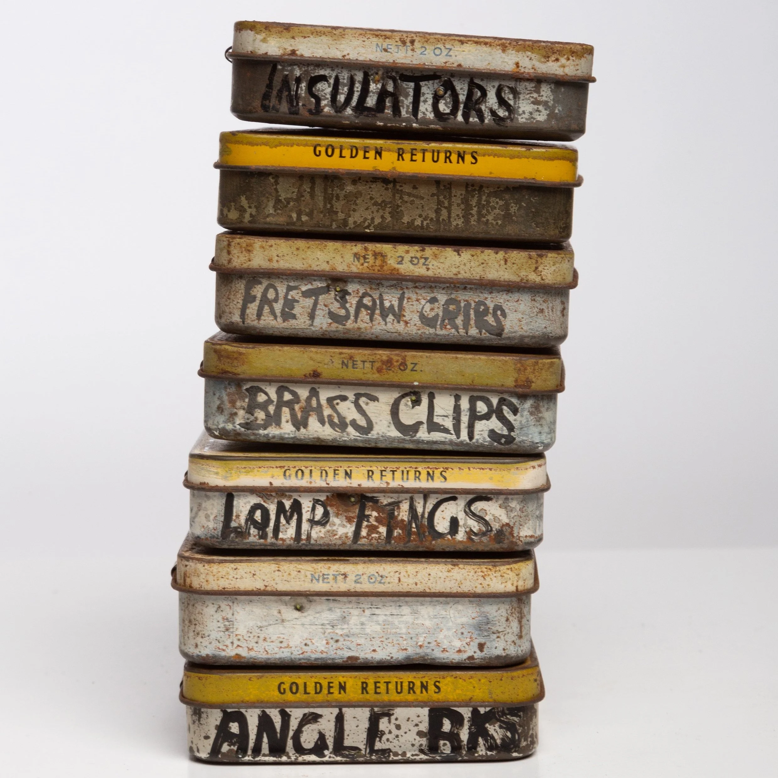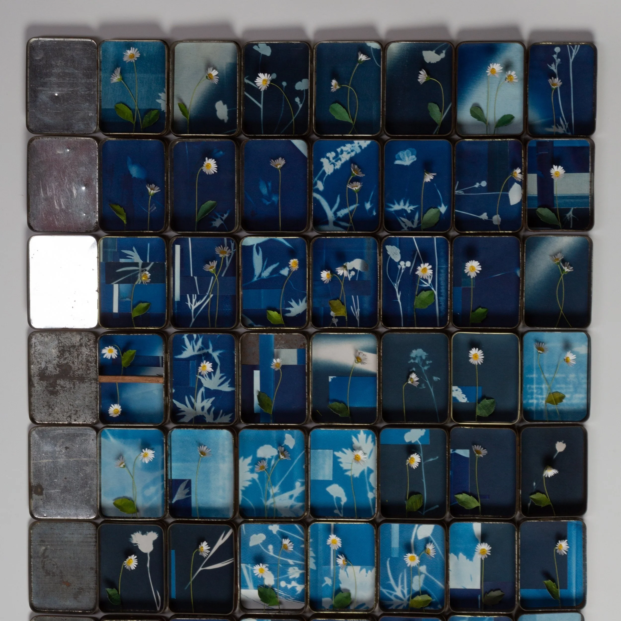 7 x 7 Golden Returns tobacco tins in the series representing my known maternal line. Each tin housing paper daisies that we all might have picked and chained as children.